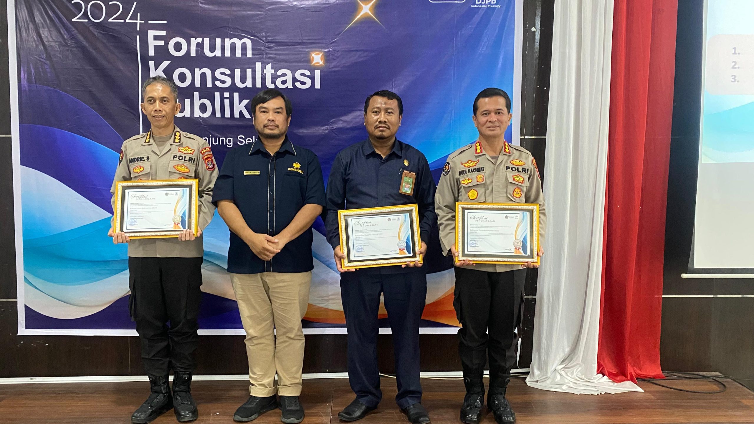 Penghargaan tersebut diterima langsung oleh Kabid Humas Polda Kaltara, Kombes Pol. Budi Rachmat, S.I.K,.M.Si, pada Senin (20/5/2024), di Kantor KPPN Tanjung Selor Provinsi Kalimantan Utara. Penyerahan penghargaan dilakukan secara langsung oleh Kepala KPPN Tanjung Selor Provinsi Kaltara dalam acara Penyerahan Penghargaan Satker dan Ekspos RPA Lingkup Tanjung Selor Provinsi Kaltara periode semester I Tahun Anggaran 2024.