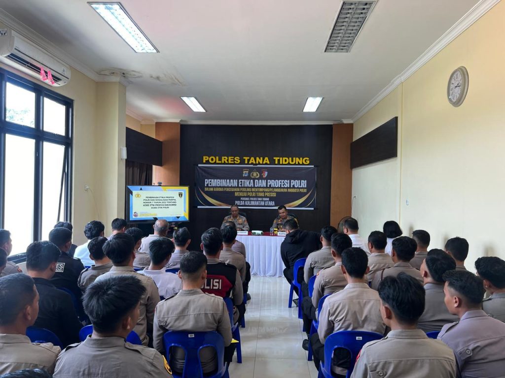 Tana Tidung – Kabidpropam Polda Kaltara Kombes Pol. Kombes Pol Krishadi Permadi, S.I.K., M.H. melaksanakan pembinaan etika profesi Polri dan sosialisasi larangan bergaya hidup hedonisme kepada Personel Polres Tana Tidung, Kamis (15/08/2024)