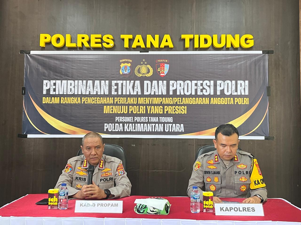 Kegiatan tersebut dihadiri oleh Kapolres Tana Tidung AKBP Erwin Syaputra Manik, S.H., S.I.K., M.H. Wakapolres Kompol Oman Purnama Abdurrahman, Ipda Liling, S.H. Jabatan Pamin Subbidwabprof, Ipda Firdaus Saleh Jabatan Pamin Subbidwabprof, Personil Bidpropam Polda Kaltara, dan Peserta 50 Personil.