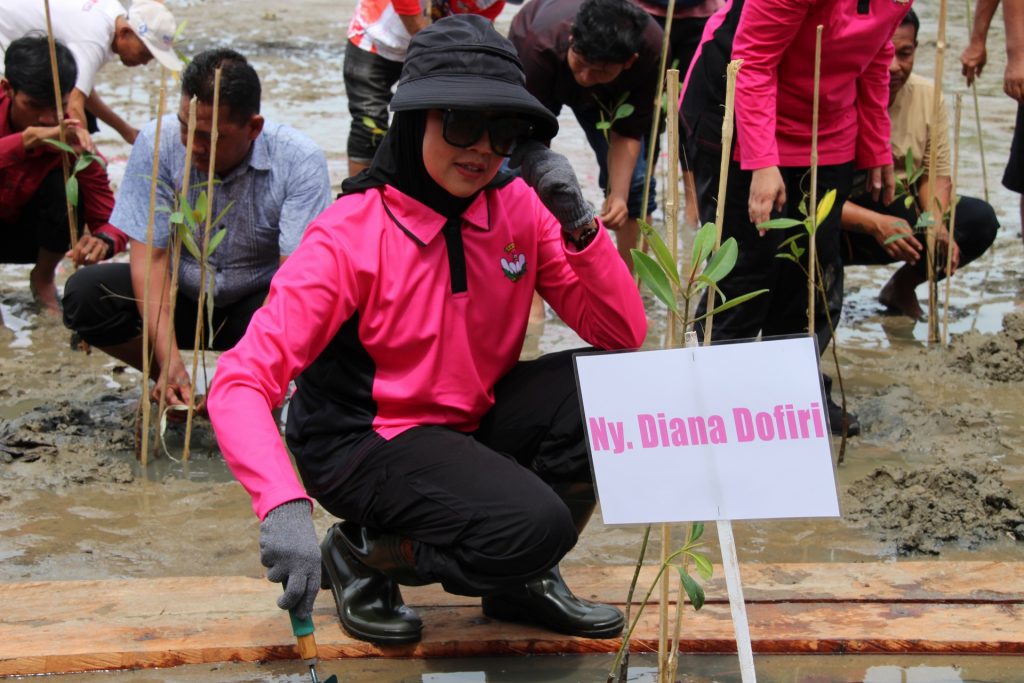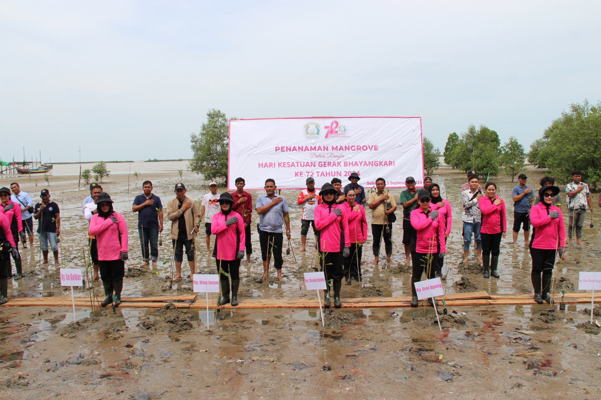 TRIBRATANews, Nunukan – Ketua Panitia HKGB ke-72 tahun 2024 Ibu Ning Imam Widodo beserta pengurus pusat Bhayangkari, pengurus Bhayangkari Daerah Kaltara beserta rombongan yang hadir melaksanakan kegiatan penanaman pohon mangrove sebanyak 1.000 pohon di Pesisir Sei Taiwan. Jumat (13/09/2024).