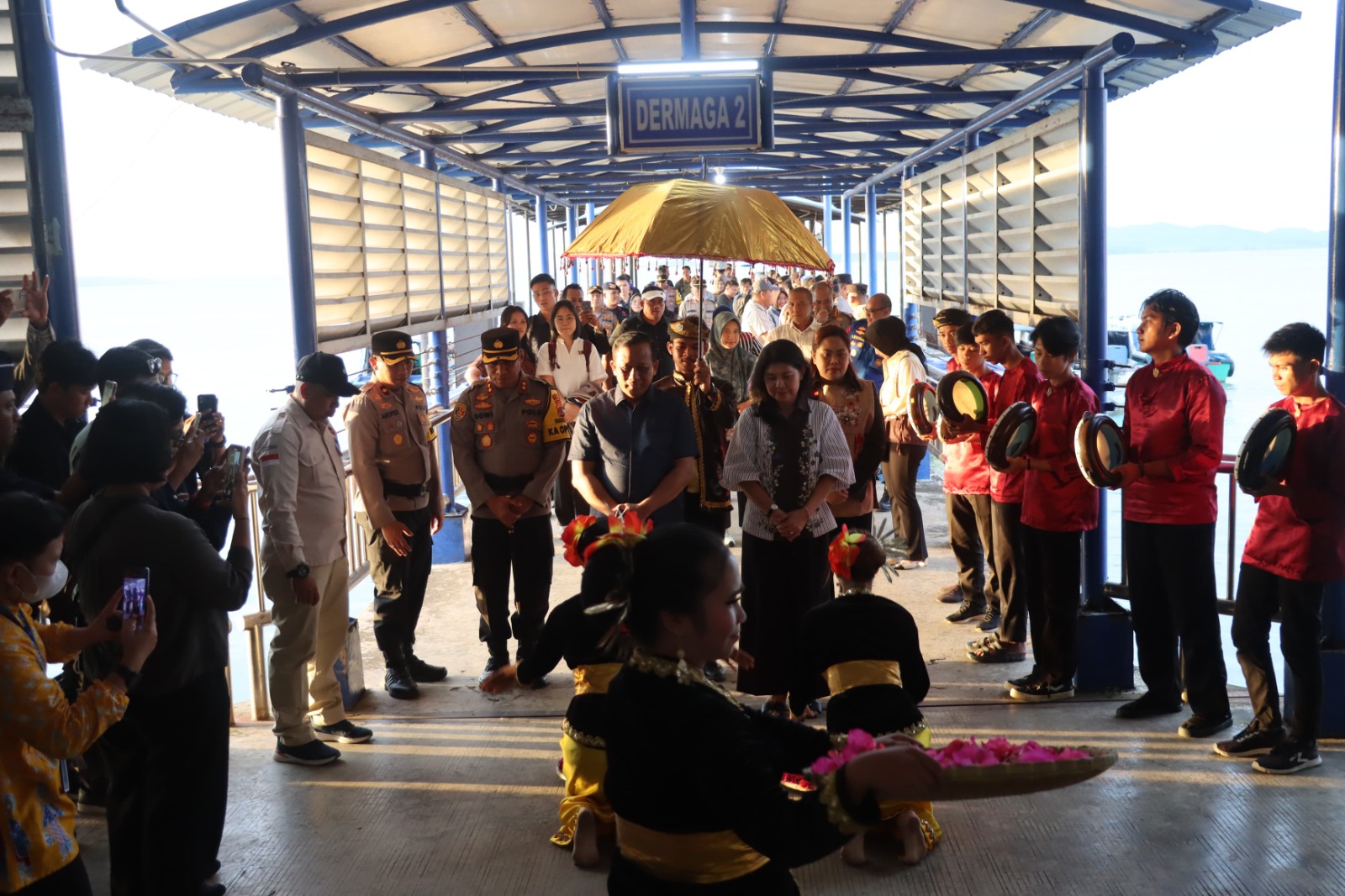 Rombongan Kapolda Kaltara tiba dengan didampingi oleh sejumlah Pejabat Utama (PJU) Polda Kalimantan Utara, dan disambut secara resmi oleh Bupati Nunukan, Hj. Asmin Laura Hafid, bersama seluruh anggota Forum Koordinasi Pimpinan Daerah (Forkopimda) Kabupaten Nunukan. Setelah prosesi adat, rombongan transit di ruang VIP Pelabuhan Liem Hie Djung sebelum melanjutkan kegiatan kunjungan.