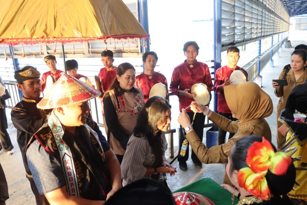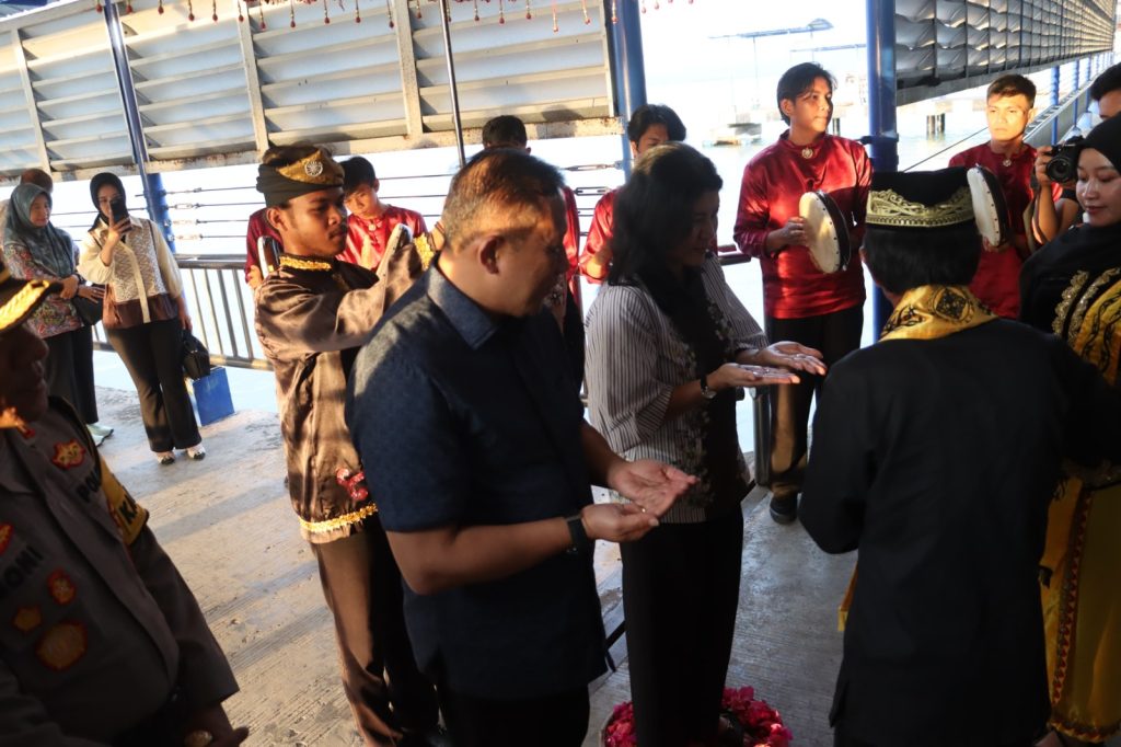Nunukan, 15 Oktober 2024 – Kepala Kepolisian Daerah (Kapolda) Kalimantan Utara, Irjen Pol. Hary Sudwijanto, S.I.K., M.Si., beserta Ibu Ketua Bhayangkari Daerah Kalimantan Utara disambut dengan prosesi adat tepung tawar saat tiba di Pelabuhan Liem Hie Djung, Nunukan. Prosesi adat ini merupakan simbol penghormatan dan penerimaan atas kunjungan kerja yang dilaksanakan pada hari Selasa, 15 Oktober 2024. Nuansa budaya yang kental menyelimuti suasana penyambutan yang berlangsung khidmat, dihadiri oleh para pejabat dan masyarakat setempat.