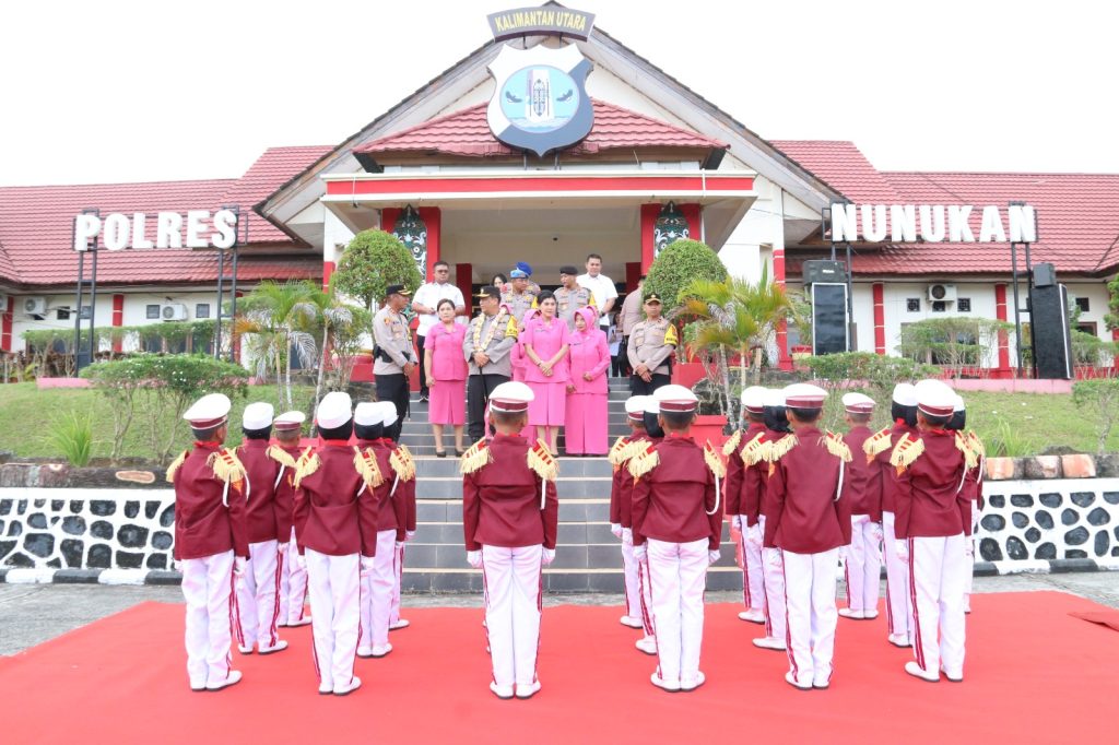 Dalam atraksi yang ditampilkan secara langsung dihadapan Kapolda Kaltara, Pocil Polres Nunukan memperagakan gerak Peraturan Baris Berbaris (PBB).