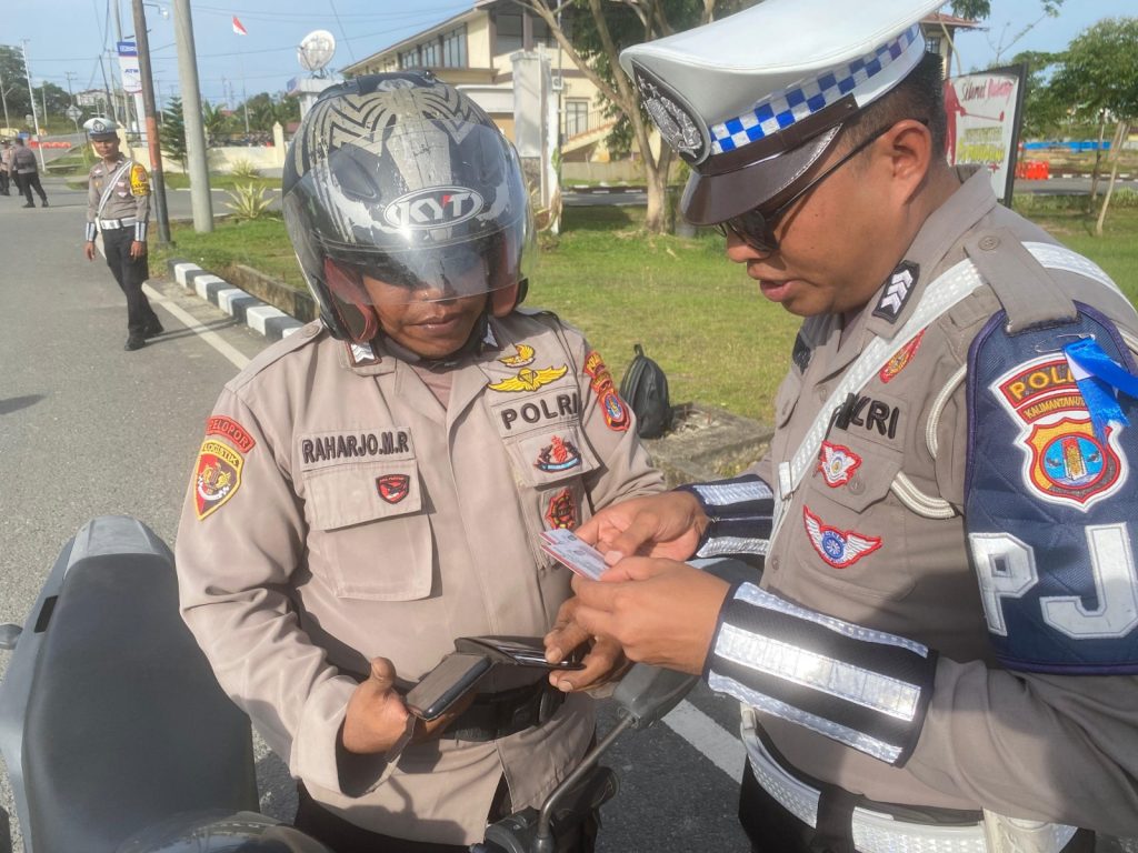 Personel Ditlantas Polda Kaltara bukan hanya merazia kendaraan masyarakat umum, Namun Personel Kepolisian yang menggunakan kendaraan bermotor juga tak luput dari sasaran razia.