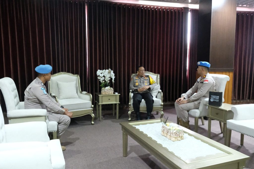 Pada hari Selasa, 5 November 2024, di ruang kerjanya, Kapolda Kalimantan Utara, Irjen Pol Hary Sudwijanto, S.I.K., M.Si., menerima kedatangan dua personel Polda Kaltara yang telah selesai menjalankan tugas internasional di Republik Afrika Tengah. Iptu Dr. Fitra Ramadhan dan Bripka Acep Bagus Setyo Pambudi, keduanya anggota Satgas Garuda Bhayangkara FPU 5 Minusca, telah menjalankan penugasan selama satu tahun atau 385 hari dalam misi perdamaian PBB.