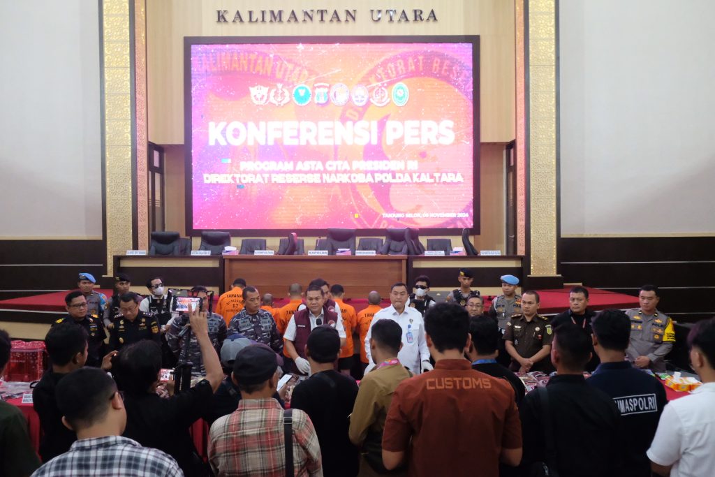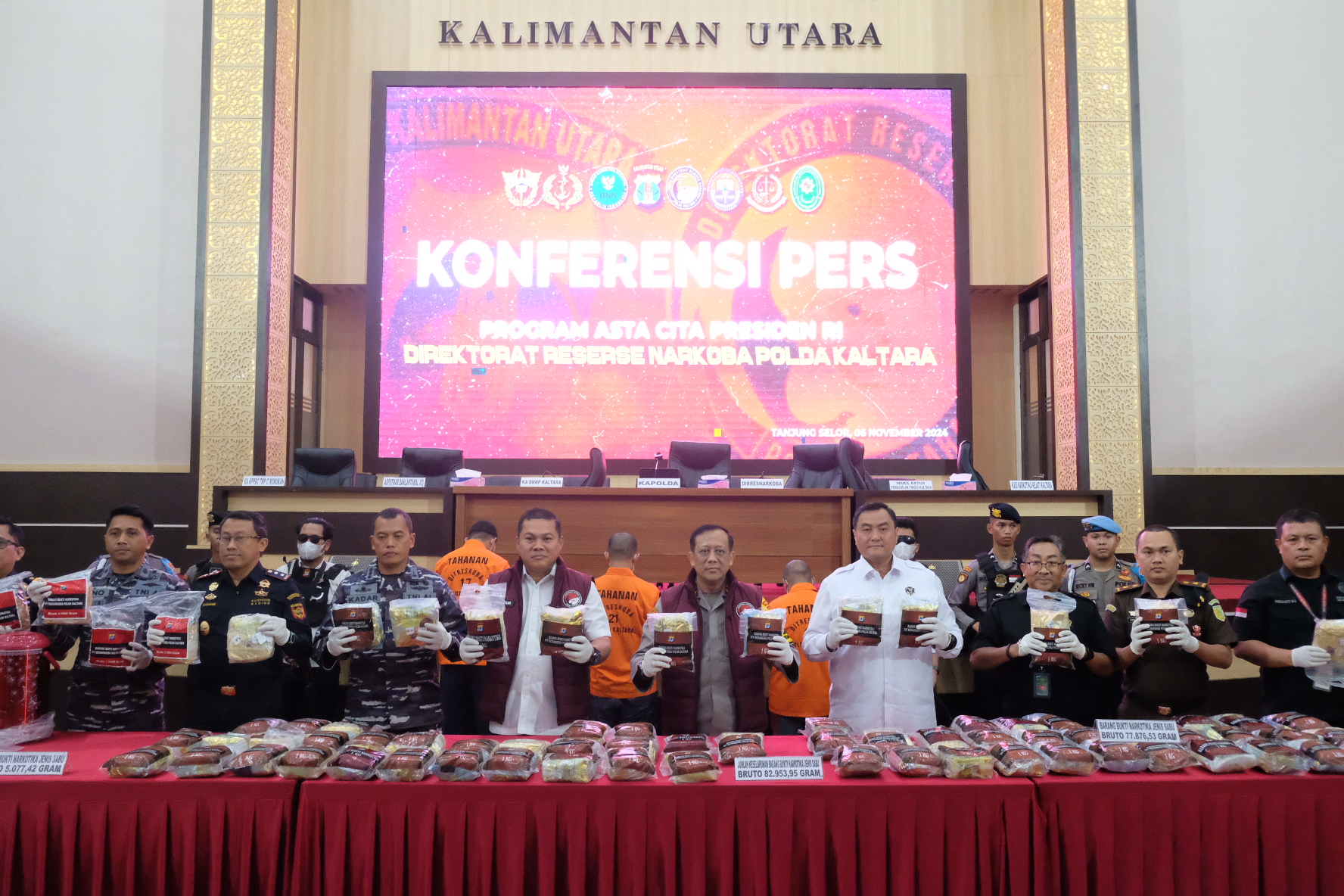 Untuk memberikan transparansi terhadap langkah Polda Kaltara yang telah dilaksanakan, pada hari ini diadakan konferensi pers. Konferensi press ini memaparkan “3 kasus dengan jumlah barang bukti 82,9 kg yang berhasil di amankan Ditresnarkoba Polda Kaltara dan Sat. Resnarkoba Polres Jajaran Polda Kaltara.”