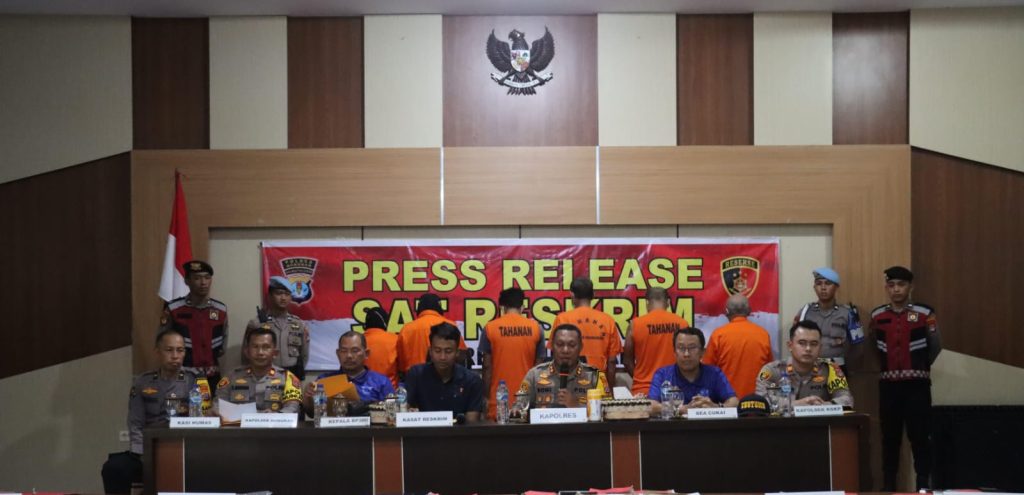 6 tersangka yang diamankan yakni AM (58), NM (39), SM (34), SF (56), LK (58) dan MB (42) dan satu tersangka masuk dalam DPO.