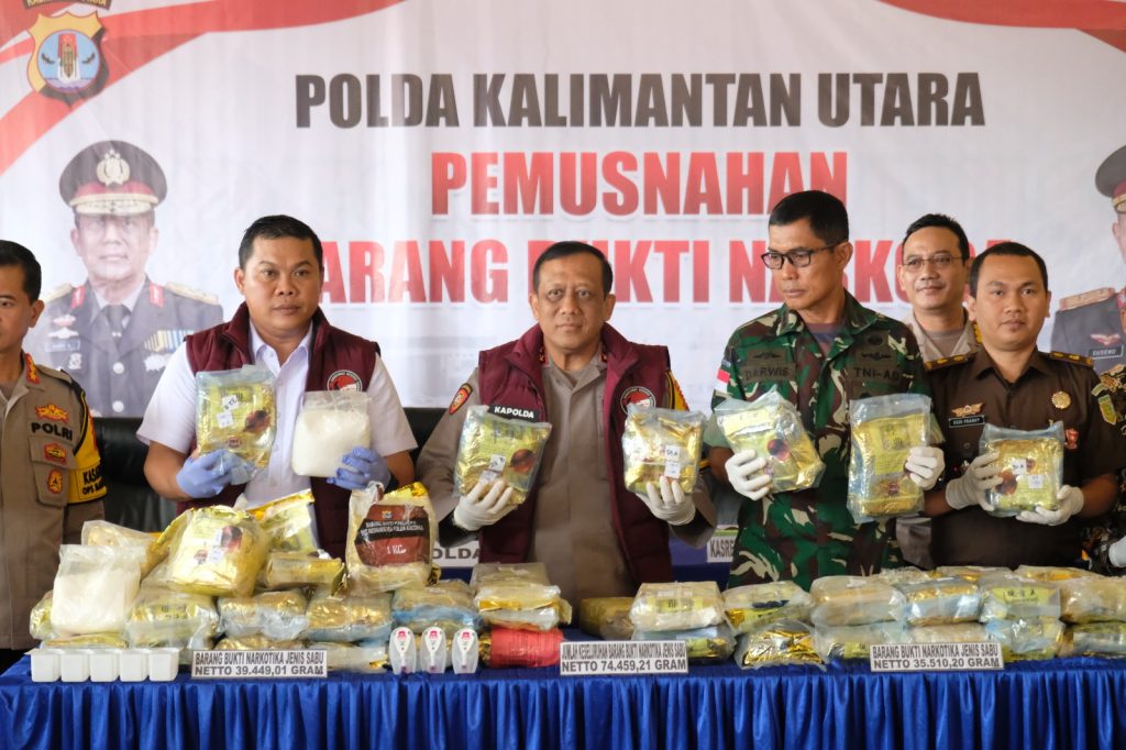 Pemusnahan ini dilakukan secara transparansi dimana Kapolda Kaltara didampingi para undangan melaksanakan pemusnahan barang bukti dengan cara memasukkan barang bukti narkotika ke dalam wadah berisi air yang telah disiapkan lalu diaduk sampai hancur (mencair) kemudian dibuang ke dalam pembuangan septic tank.