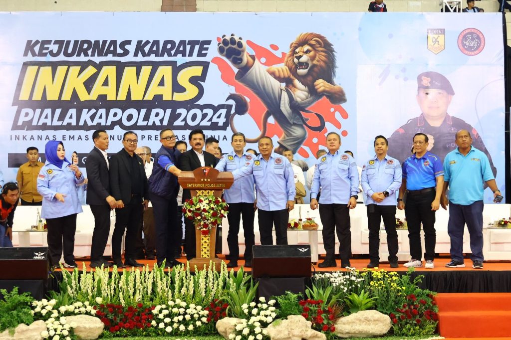 Malang, 13 Desember 2024 – Kapolda Kalimantan Utara, Irjen Pol Hary Sudwijanto, S.I.K., M.Si., menghadiri pembukaan Kejuaraan Nasional (Kejurnas) Karate INKANAS Piala Kapolri 2024 yang berlangsung di Kota Malang. Acara bergengsi tersebut dibuka secara resmi oleh Wakapolri, Komjen Pol Ahmad Dofiri, yang membacakan sambutan Kapolri untuk membuka rangkaian kegiatan.