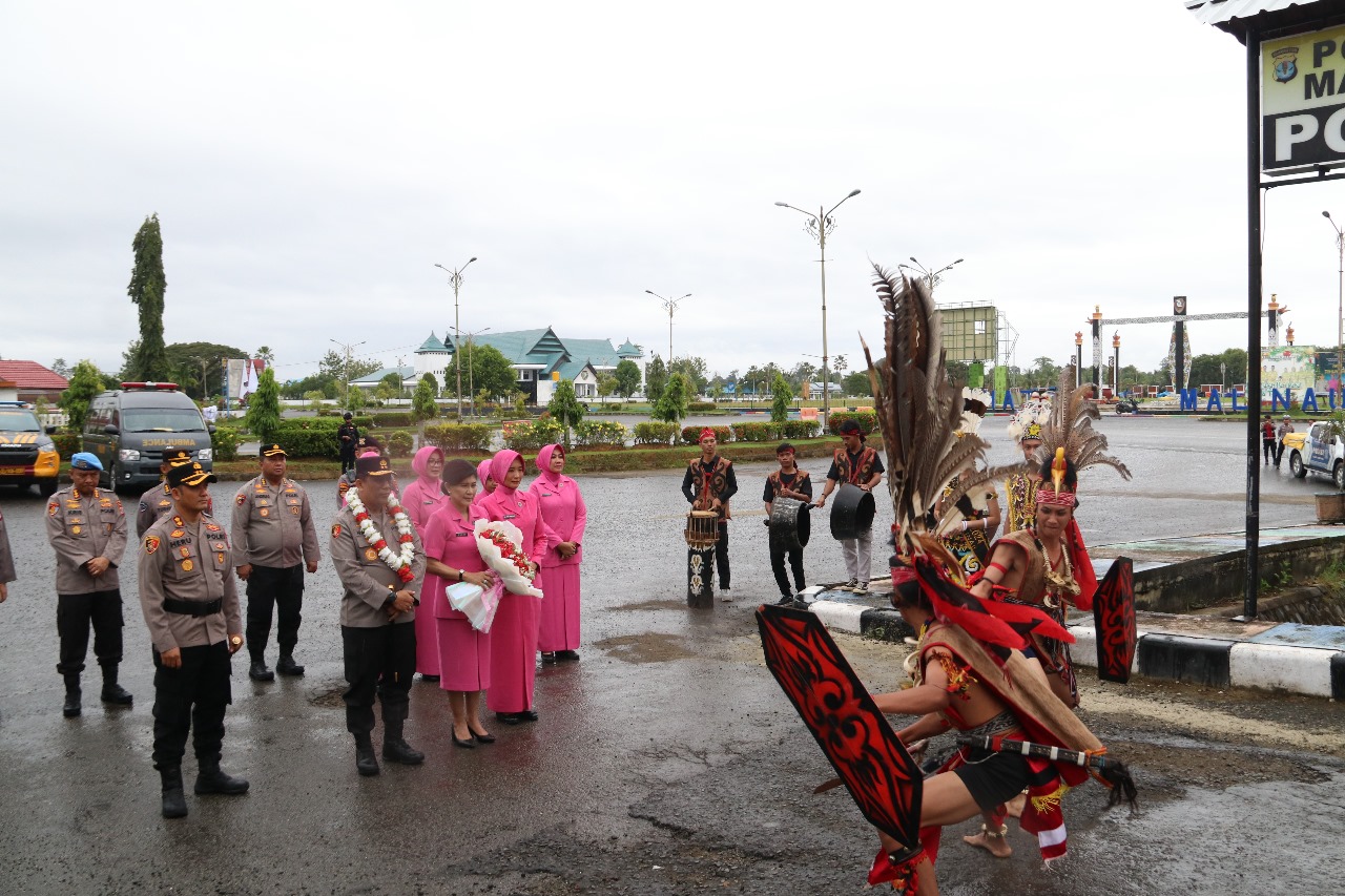 Setibanya di Polres Malinau, Kapolda dan Ketua Bhayangkari menerima penyambutan tradisional berupa prosesi tepung tawar, pengalungan bunga, serta pemberian buket bunga kepada Ketua Bhayangkari Daerah Kalimantan Utara.