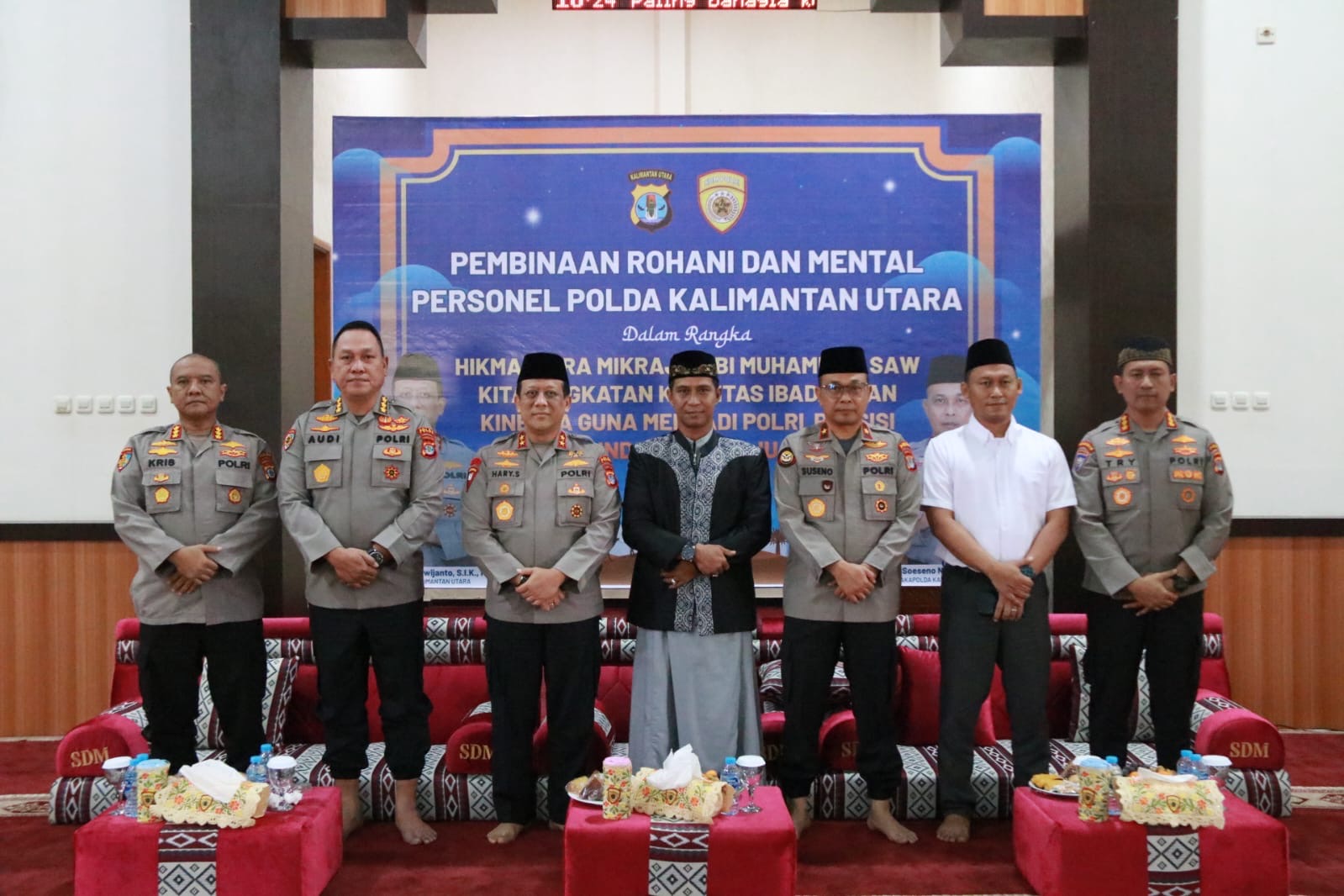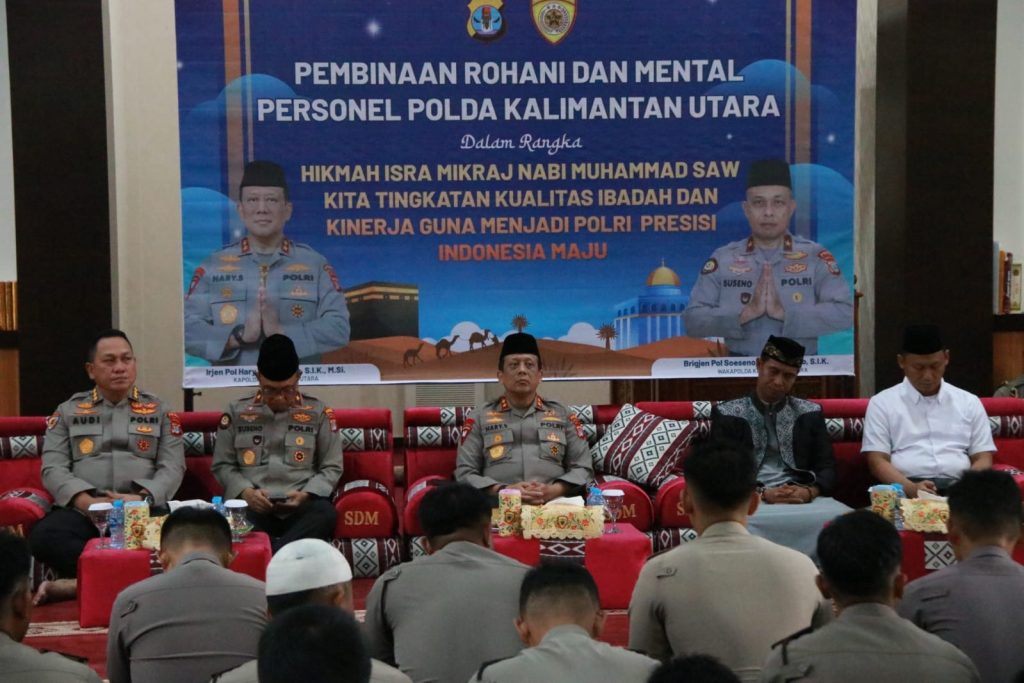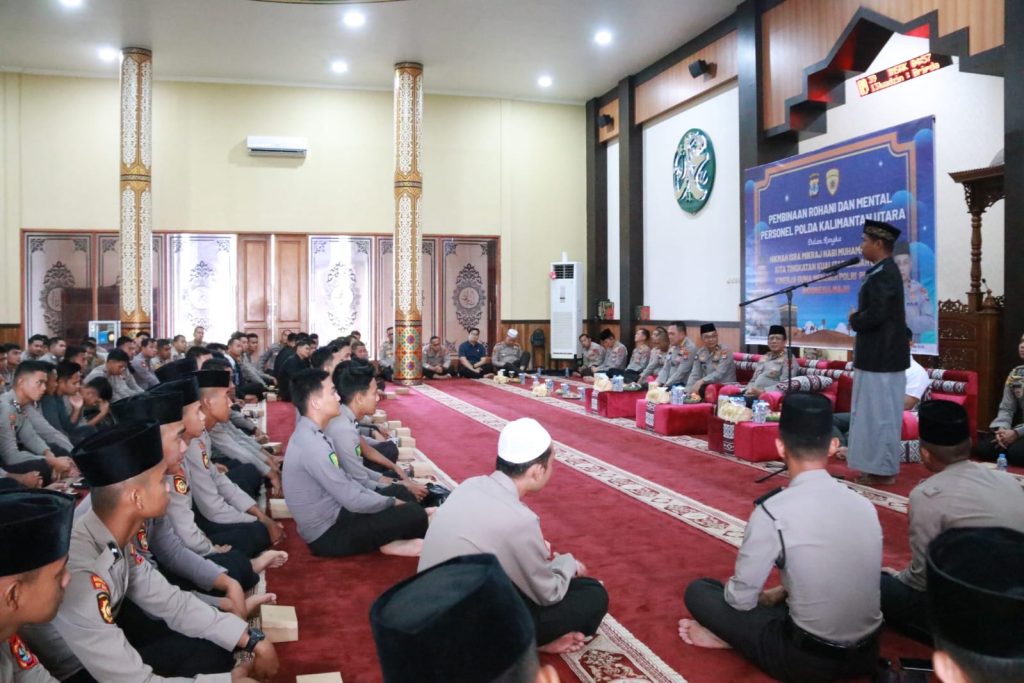 Polda Kalimantan Utara menyelenggarakan acara peringatan Isra Mikraj Nabi Muhammad Shallallahu Alaihi Wassalam 1446 Hijriah di Masjid Nur Aryaguna, dengan dihadiri langsung oleh Kapolda Kaltara, Irjen Pol Hary Sudwijanto, S.I.K., M.Si. Acara ini juga dihadiri oleh Wakapolda, para Pejabat Utama (PJU), serta seluruh personel dan ASN Polda Kaltara.