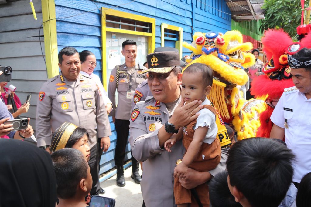 Sejak tiba di lokasi, Kapolda Kaltara disambut meriah dengan atraksi barongsai serta puluhan anak-anak yang ikut memeriahkan suasana. Warga juga tampak antusias menyambut rombongan, menciptakan atmosfer penuh kehangatan di sepanjang lorong-lorong kampung.