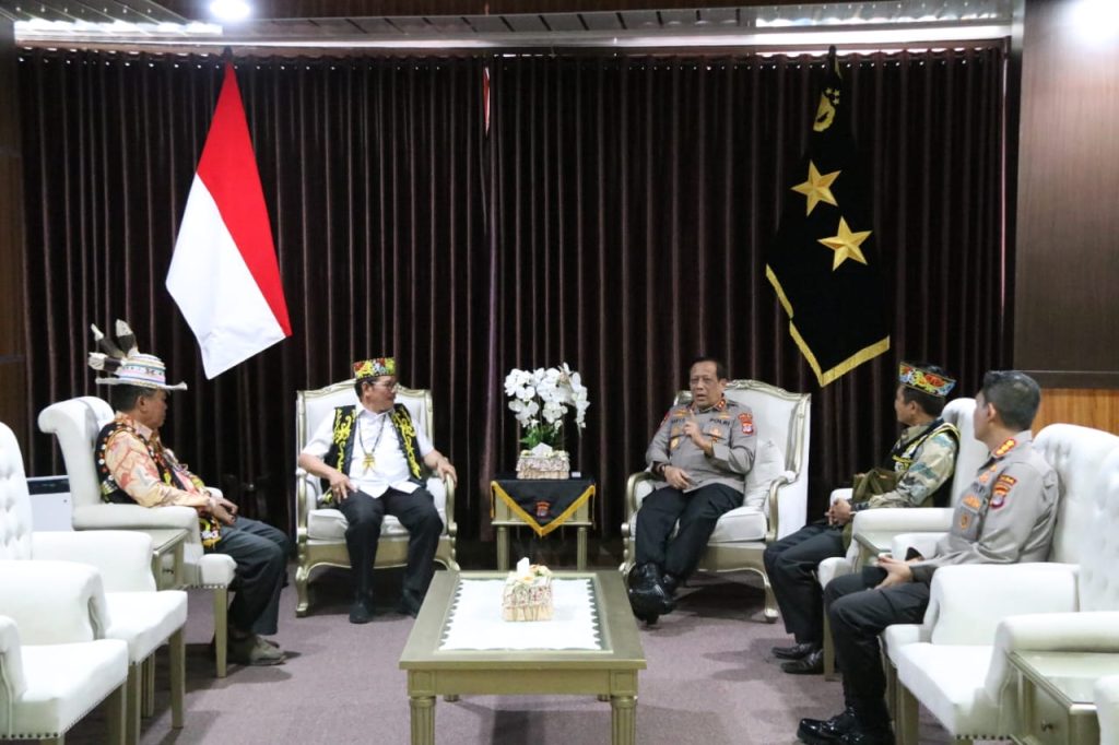 Tanjung Selor, 19 Maret 2025 – Kapolda Kalimantan Utara, Irjen Pol Hary Sudwijanto, S.I.K., M.Si., menerima kunjungan silaturahmi Wakil Gubernur Kalimantan Utara, Ingkong Ala, S.E., M.Si., yang juga menjabat sebagai Ketua Lembaga Adat Dayak Kenya Kaltara (LADK-KU), di ruang kerja Kapolda Kaltara. Dalam pertemuan tersebut, Wakil Gubernur didampingi oleh Drs. Joni Laing Impang, M.Si., Ketua Dewan Adat Dayak Kaltara (DAD-KU), serta Andreas Sarun, Sekretaris LADK-KU. Sementara itu, Kapolda Kaltara turut didampingi oleh Direktur Intelkam, Direktur Binmas, dan Karosdm Polda Kaltara.