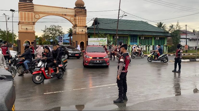 Personel Kepolisian diterjunkan disejumlah titik termasuk masjid besar maupun lapangan yang menjadi lokasi penyelenggaran salat Ied. Pengamanan ini mencakup pengaturan lalu lintas, membantu menyebrangkan jamaah dan patroli guna antisipasi potensi gangguan kamtibmas.