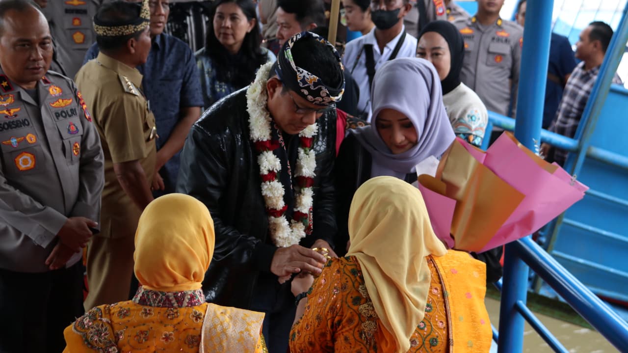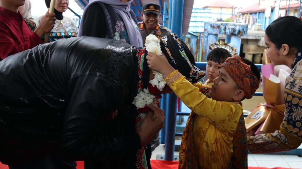 Kedatangan Kapolda disambut langsung di depan pintu gerbang ruang VIP Pelabuhan Speed Kayan I Tanjung Selor. Kapolda Kaltara dan Ketua Bhayangkari menerima penyambutan tradisional berupa prosesi tepung tawar, pengalungan bunga, serta pemberian buket bunga kepada Ketua Bhayangkari Daerah Kalimantan Utara.