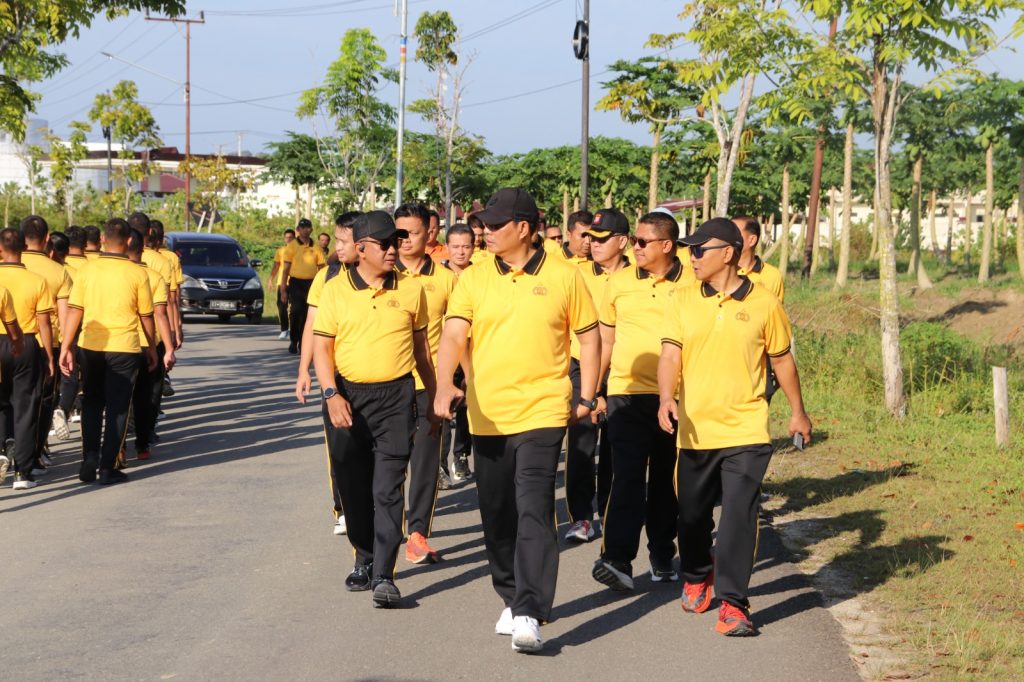 Tanjung Selor,— Dalam semangat mempererat solidaritas dan menjaga kebugaran fisik, Kapolda Kalimantan Utara Brigjen Pol. Djati Wiyoto Abadhy, S.I.K., memimpin kegiatan olahraga bersama berupa jalan santai yang berlangsung pada Jumat pagi. Didampingi oleh Wakapolda Kaltara serta para Pejabat Utama (PJU) Polda Kaltara, rute jalan santai dimulai dari lapangan Mapolda Kaltara menuju sirkuit Bumi Rahayu dan kembali lagi ke Mapolda.