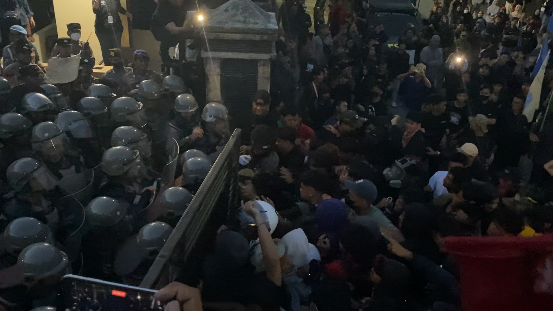 Aksi yang awalnya berjalan damai sempat memanas, menyebabkan bentrokan kecil antara massa aksi dan aparat keamanan. Namun, situasi berhasil dikendalikan kembali setelah adanya negosiasi antara kedua belah pihak. Setelah perundingan, massa akhirnya membubarkan diri dengan tertib sekitar pukul 20.10 WITA.