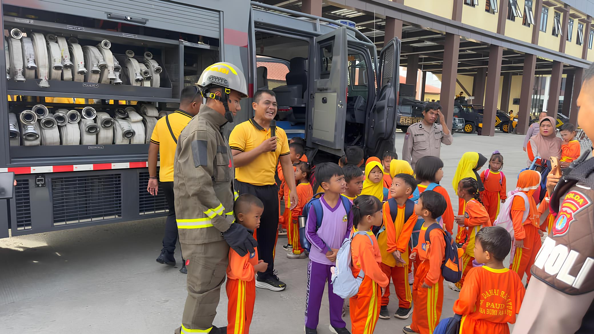 Anak-anak PAUD KB Damai Rahayu diperkenalkan dengan alat-alat khusus (Alsus) pengendalian massa, kendaraan taktis seperti Armoured Water Canon (AWC) dan unit penanggulangan kebakaran hutan dan lahan (Karhutla), serta pakaian khusus Karhutla. Tak kalah menarik, mereka juga diajak mengenal lebih dekat Unit Satwa K-9, yang menjadi daya tarik tersendiri bagi para peserta.