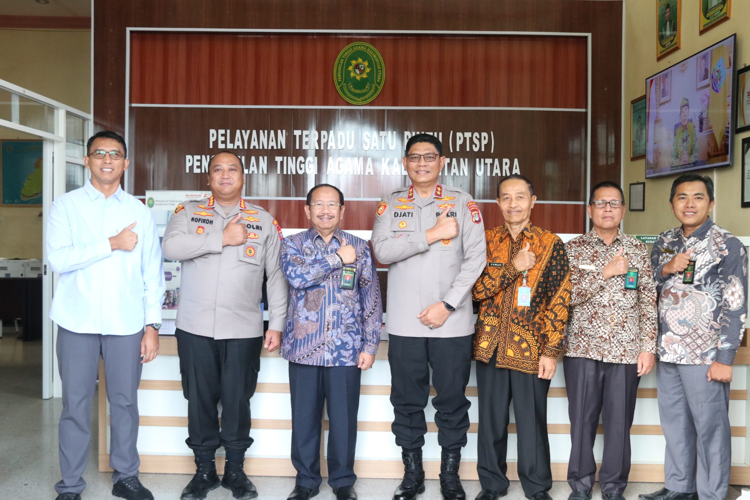 Kapolda Kalimantan Utara Irjen Pol. Djati Wiyoto Abadhy S.I.K didampingi oleh Kapolresta Bulungan Kombes Pol. Rofikoh Yunianto S.I.K. dan Dirintelkam Polda Kaltara Kombes Pol. Bagus Suseno, S.I.K., M.H., melaksanakan silaturahmi ke Pengadilan Tinggi Agama Kaltara yang beralamat di Jl. Binjai No.28, Tj. Selor Hilir, Kabupaten Bulungan.