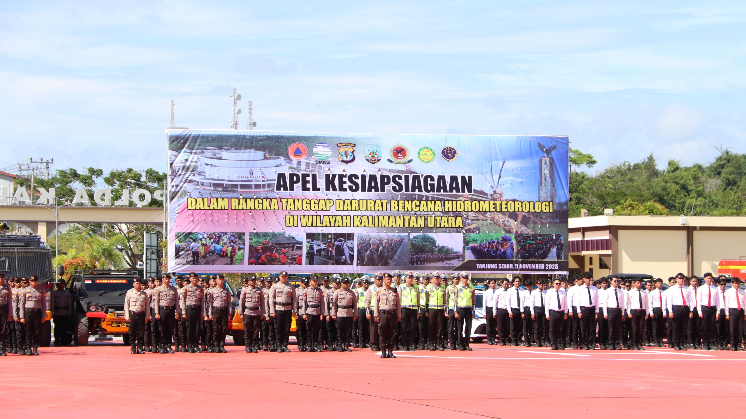 Tanjung Selor – Dalam rangka meningkatkan kesiapsiagaan menghadapi potensi bencana hidrometeorologi, Polda Kalimantan Utara menggelar apel Kesiapsiagaan Tanggap Darurat pada Rabu (15/11/2025) di Lapangan Mapolda Kaltara. Kegiatan ini menjadi bagian dari upaya terpadu Polri bersama TNI dan jajaran Stakeholder terkait guna memperkuat respons dan mitigasi bencana di wilayah Kaltara.