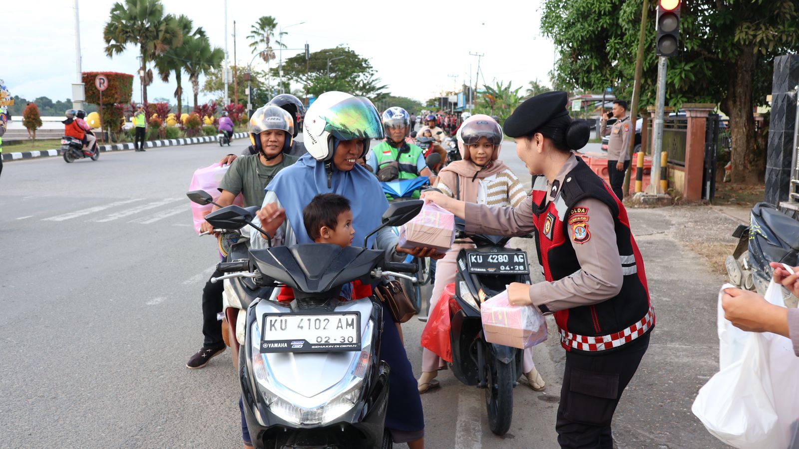 Seperti yang dilaksanakan pada Selasa sore ini (24/02/26), Polda Kaltara membagikan sebanyak 500 paket takjil dan nasi padang kepada para pengendara R2 maupun R4 yang melintas di Jalan Simpang Sengkawit-Sabanar lama, tepatnya di Simpang Tugu Cinta Damai, Tanjung Selor, Kalimantan Utara.