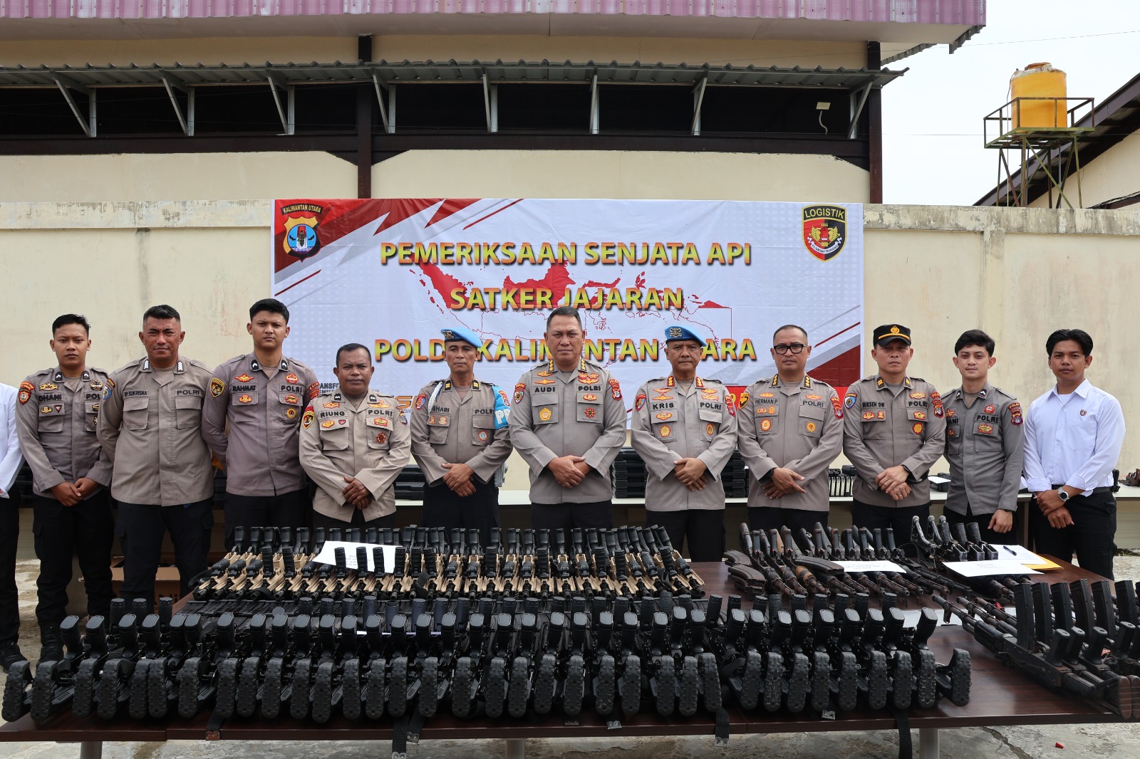 Irwasda Polda Kaltara, Kombes Pol. Audy Alfrits Herman Manus, S.I.K., M.Si., CFRA., bersama Kabid Propam Polda Kaltara, Kombes Pol. Krishadi Permadi, S.I.K., M.H., melaksanakan pengecekan senjata api (senpi) di depan Gedung Logistik Polda Kaltara. Kegiatan tersebut turut dihadiri Karologistik, Kombes Pol. Herman Priyanto, S.I.K., M.A.P.